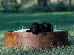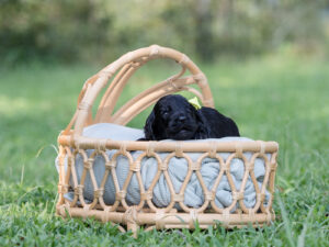 Chocolate Chunk has a shiny black coat and is looking to have a straight to wavy coat. He coat is incredibly soft. My favorite coat of the litter.