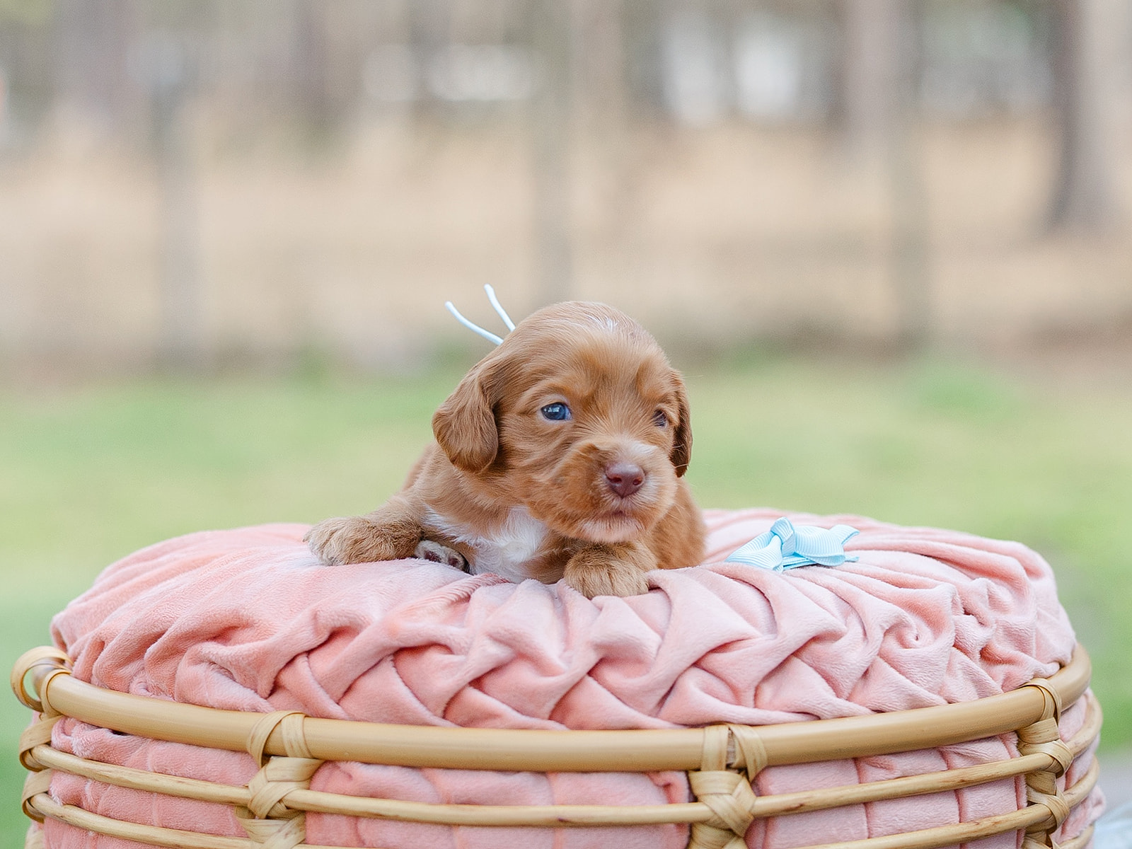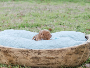 Our puppies are raised with lots of love in our home to give them the best start possible. We utilize Early Neurological Stimulation and Puppy Culture when raising our puppies for a puppy curriculum that follows each litters development. They come microchipped, with a 2 year health guarantee, up to date on shots and de-wormings and with a puppy care package. If you have any questions just let me know!